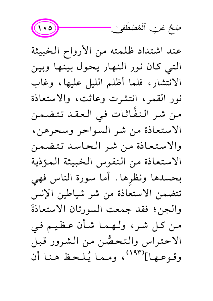 عند اشتداد ظلمته من الأرواح الخبيثة التي كان نور النهار يحول بينها وبين الانتشار، فلما أظلم الليل عليها، وغاب نور القمر، انتشرت وعاثت، والاستعاذة من شر النفَّاثات في العقد تتضمن الاستعاذة من شر السواحر وسحرهن، والاستعاذة من شر الحاسد تتضمن الاستعاذة من النفوس الخبيثة المؤذية بحسدها ونظرِها. أما سورة الناس فهي تتضمن الاستعاذة من شر شياطين الإنس والجن؛ فقد جمعت السورتان الاستعاذةَ من كل شر، ولهما شأن عظيم في الاحتراس والتحصُّن من الشرور قبل وقوعها] (¬193) ، ومما يُلحظ هنا أن
