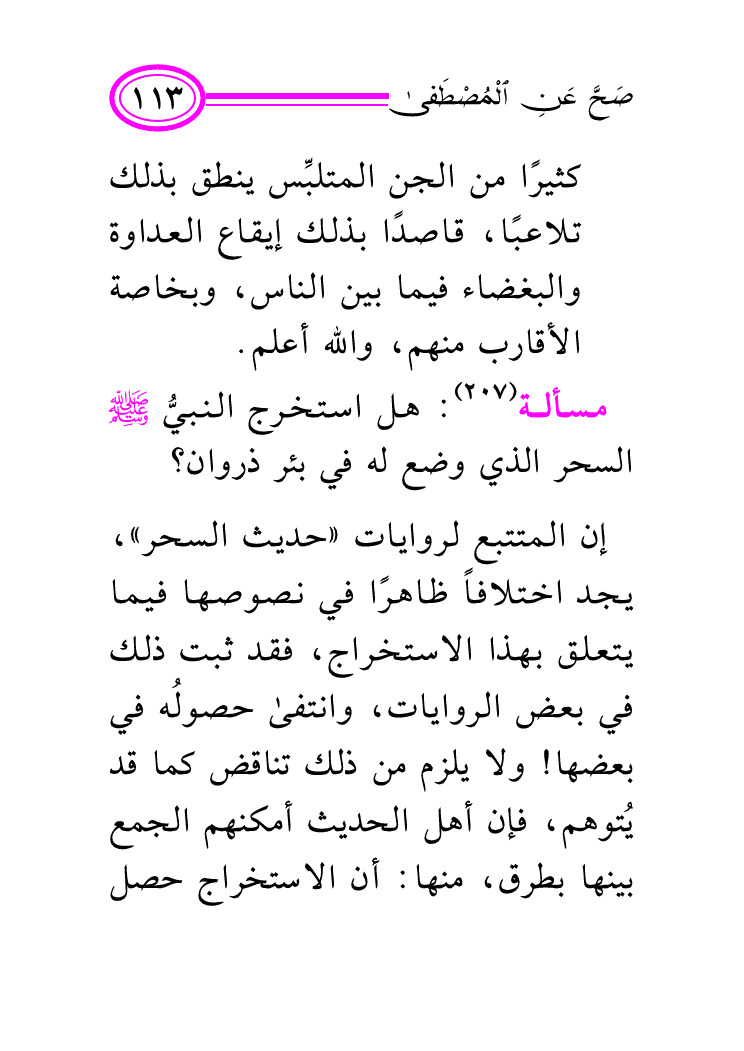 (¬207) قد بسطت الإجابة عن هذه المسألة في كتابي (الحِذْر من السِّحْر) ، في الفصل الأول منه، فانظره إن شئت المزيد.