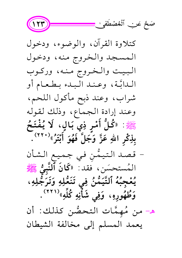 (¬220) أخرجه أحمد في مسنده (2/359) ، من حديث أبي هريرة رضي الله عنه، وهو في مصنف عبد الرزاق بمعناه، برقم (10455) وبرقم (20280) ، وكذا هو عند البيهقي في «الكبرى» برقم (10331) . كل ذلك بلفظ: «فَهُوَ أَبْتَرُ» ، وعند أبي داود؛ كتاب: الأدب، باب: الهدى في الكلام، برقم (4840) ، عن أبي هريرة رضي الله عنه أيضًا، بلفظ «فَهُوَ أَجْذَمُ» .