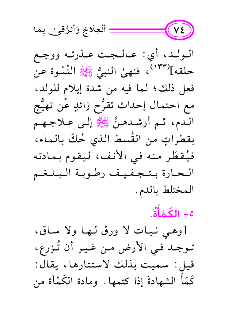 الولد، أي: عالجت عذرته ووجع حلقه] (¬133) ، فنهى النبيُّ صلى الله عليه وسلم النِّسْوة عن فعل ذلك؛ لما فيه من شدة إيلامٍ للولد، مع احتمال إحداث تقرُّح زائدٍ عن تهيُّج الدم، ثم أرشدهنَّ صلى الله عليه وسلم إلى علاجهم بقطراتٍ من القُسط الذي حُكّ بالماء، فيُقطَر منه في الأنف، ليقوم بمادته الحارة بتجفيف رطوبة البلغم المختلط بالدم.
