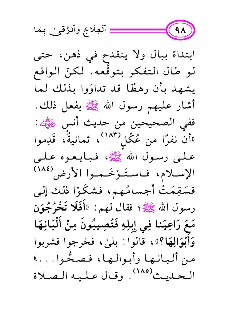 (¬185) جزء من حديث متفق عليه - من حديث أنس رضي الله عنه -: أخرجه البخاري؛ كتاب: الديات، باب: القسامة، برقم (6899) ، ومسلم؛ كتاب: القسامة، باب: حكم المحاربين والمرتدين، برقم (1671) .