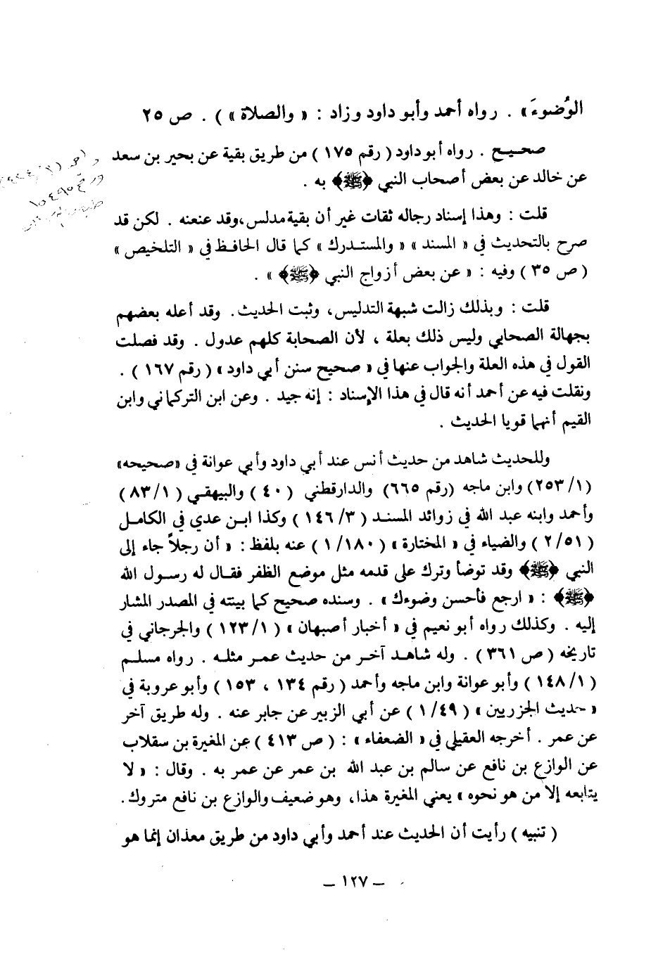وقد فصلت القول فى هذه العلة والجواب عنها فى " صحيح سنن أبى داود " (رقم 167) .
