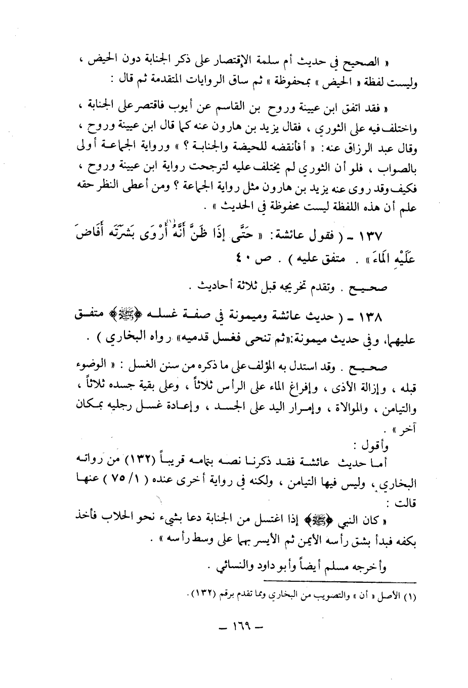 (137) - (قول عائشة: " حتى إذا ظن أنه (1) أروى بشرته أفاض عليه الماء ". متفق عليه (ص 40)