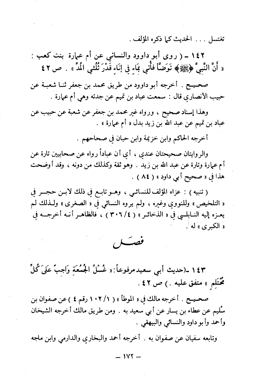 (143) (حديث أبى سعيد مرفوعا: " غسل الجمعة واجب على كل محتلم ". متفق عليه (ص 42) .