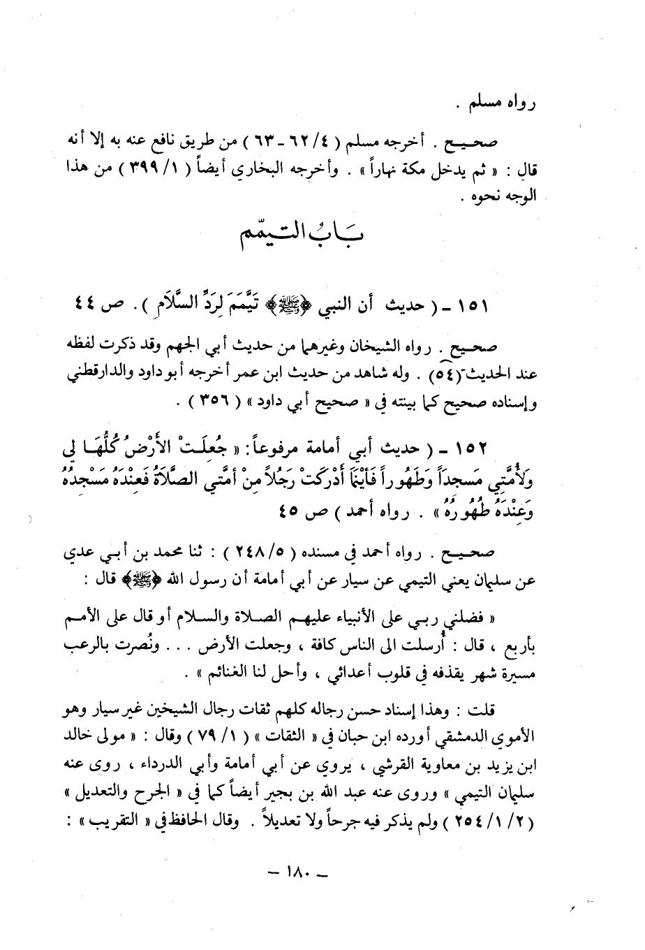 (151) - (حديث أن النبى صلى الله عليه وسلم تيمم لرد السلام) (ص 44) .