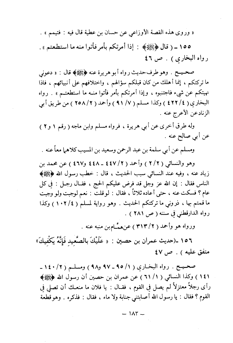 (156) - (حديث عمران بن حصين: " عليك بالصعيد فإنه يكفيك ". متفق عليه (ص47) .