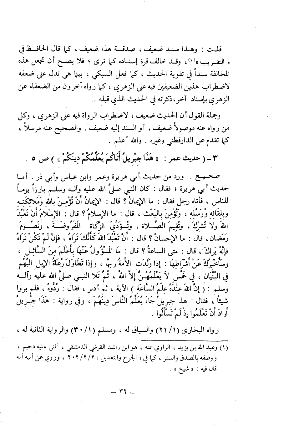 (3) - (حديث عمر " هذا جبريل أتاكم يعلمكم دينكم ") ص 5.