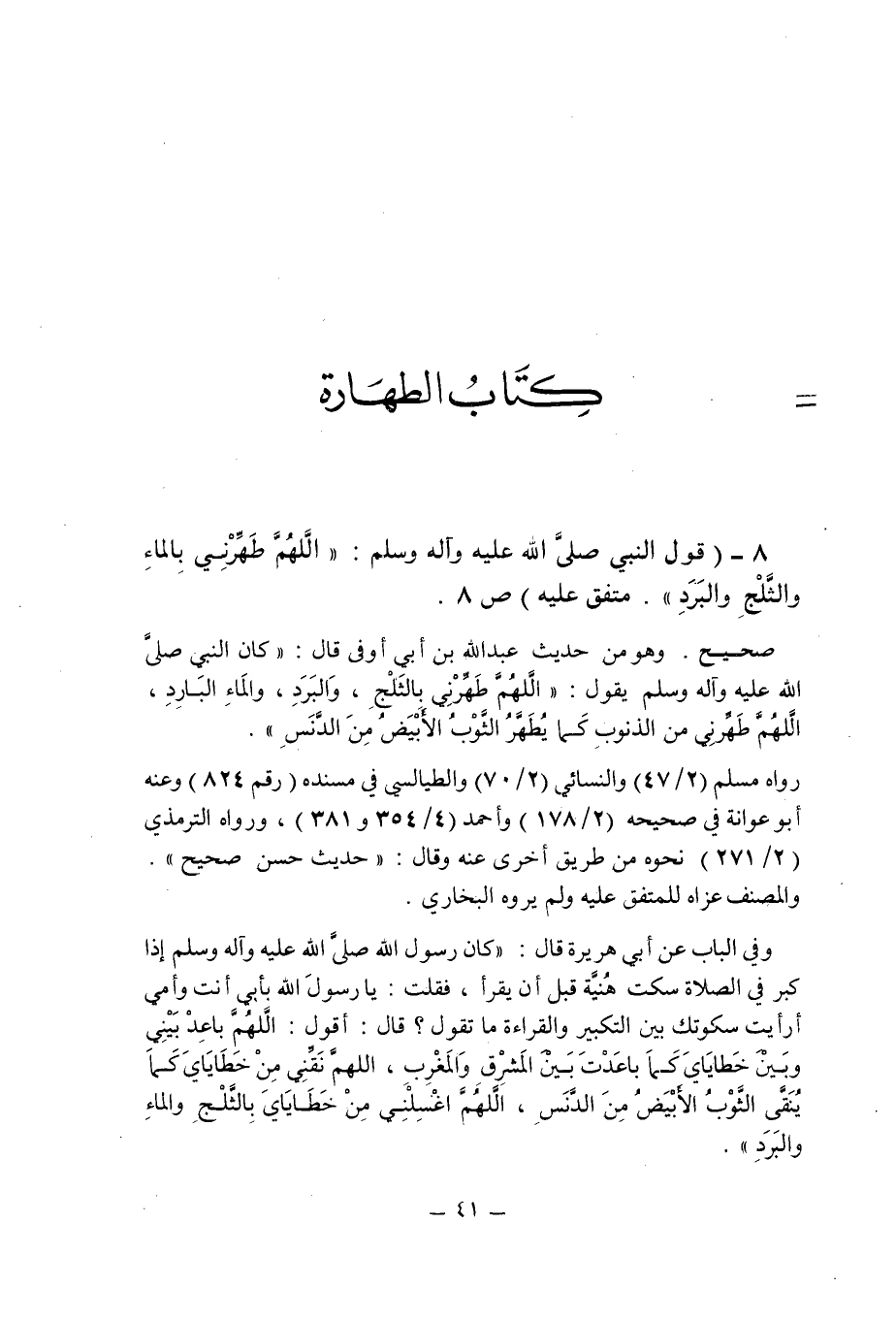 (8) - (قول النبى صلى الله عليه وآله وسلم:" اللهم طهرنى بالماء والثلج والبرد " ص 8