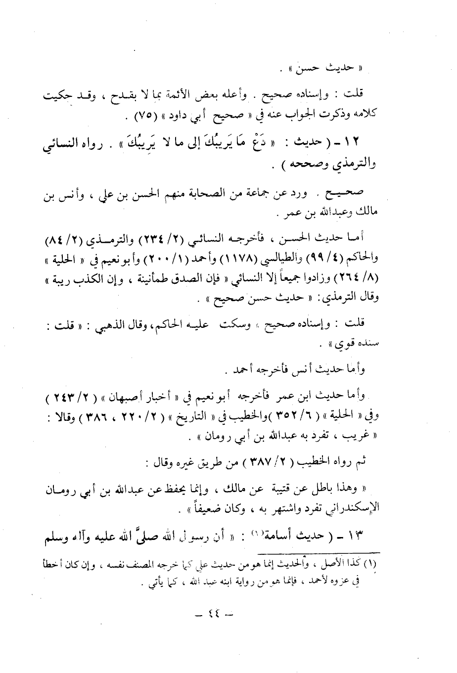 (12) - (حديث: " دع ما يريبك إلى ما لا يريبك ". رواه النسائى والترمذى وصححه.