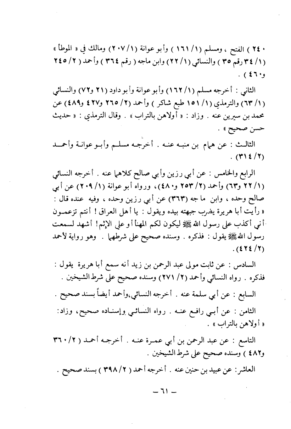 /240 - الفتح) , ومسلم (1/161) وأبوعوانة (1/207) ومالك فى " الموطأ " (1/34 رقم 35) والنسائى (1/22) وابن ماجه (رقم 364) وأحمد (2/245 و460) .