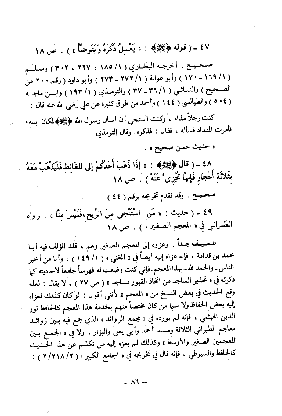 (47) - (قوله صلى الله عليه وسلم: " يغسل ذكره ويتوضأ " (ص 18) .