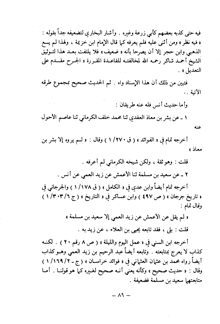 2 - عن سعيد بن مسلمة حدثنا الأعمش عن زيد العمى عن أنس.