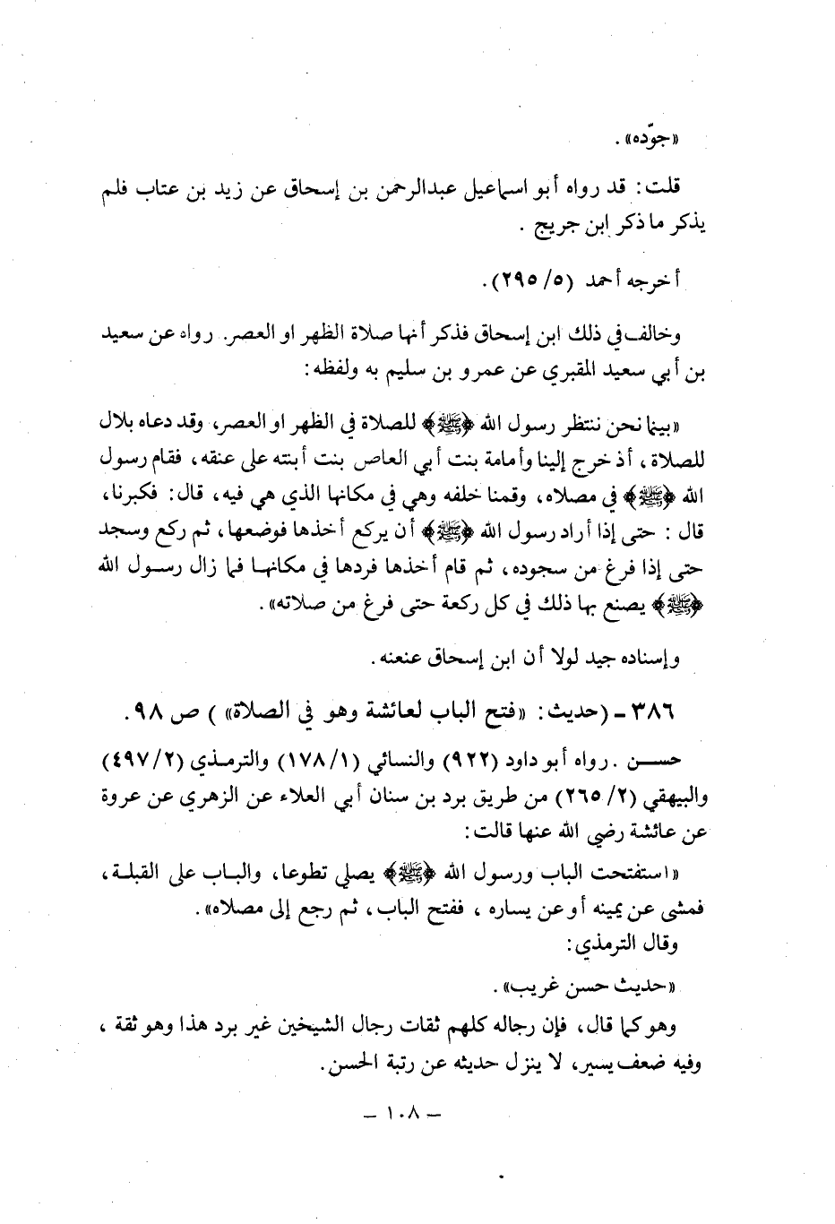 (386) - (حديث: " فتح الباب لعائشة وهو فى الصلاة " (ص 98) .