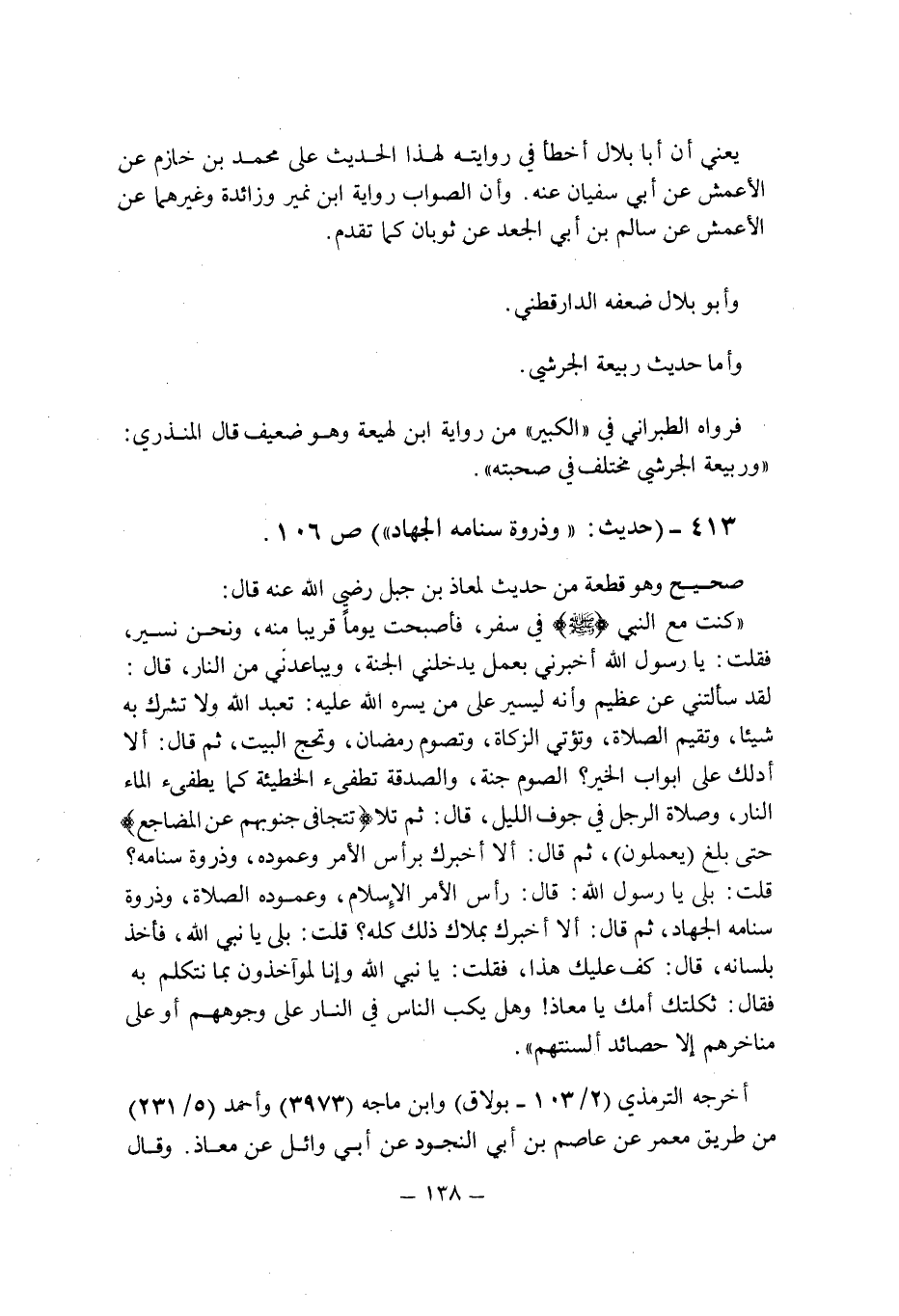 (413) - (حديث: " وذروة سنامه الجهاد " (ص 106) .