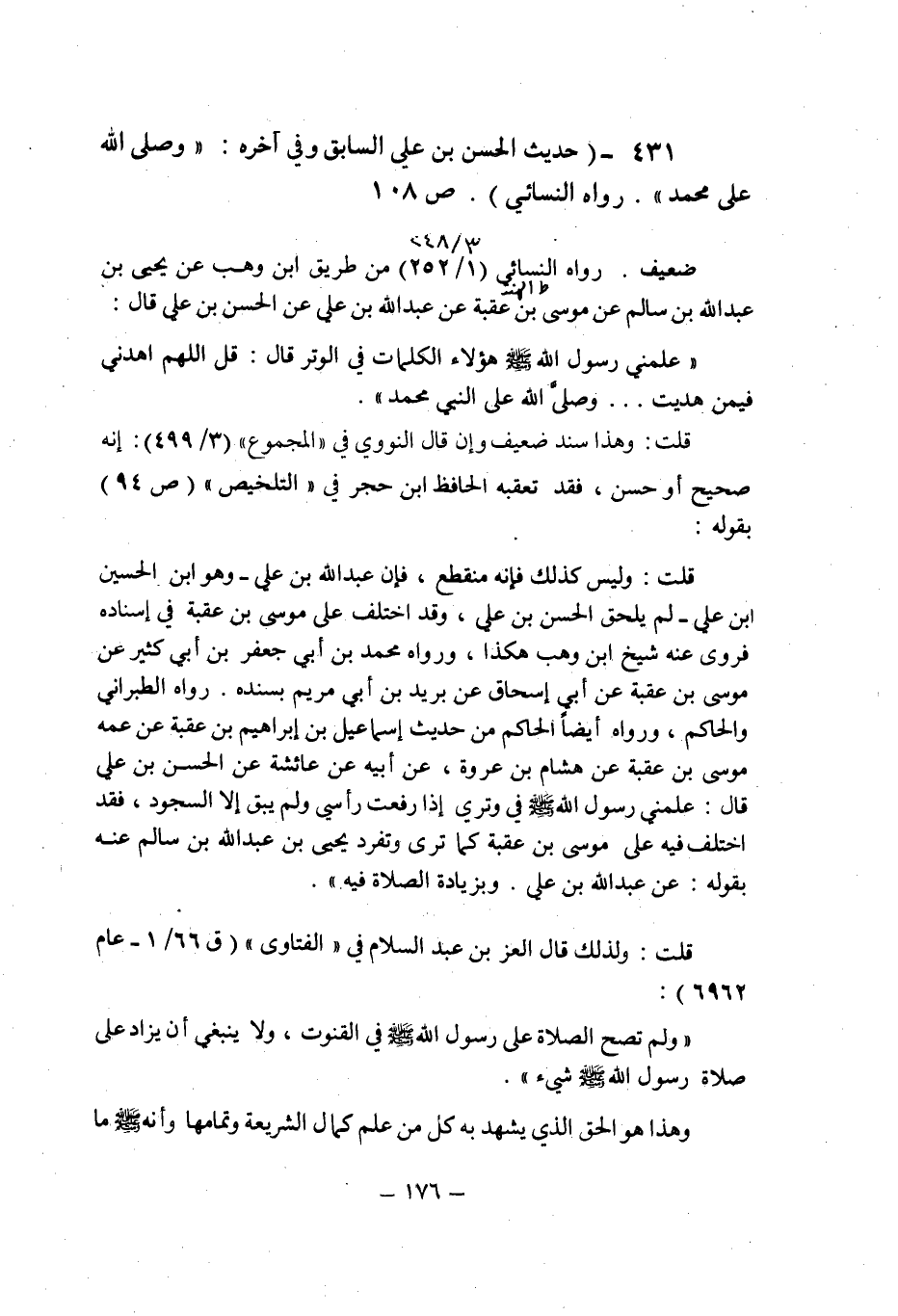 (431) - (حديث الحسن بن على السابق وفى آخره: " وصلى الله على محمد ". رواه النسائى (ص 108) .