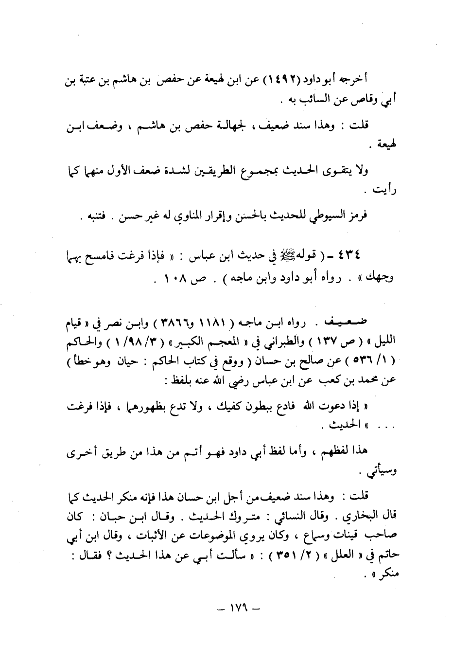 (434) - (قوله صلى الله عليه وسلم فى حديث ابن عباس: " فإذا فرغت فامسح بهما وجهك ". رواه أبو داود وابن ماجه (ص 108) .