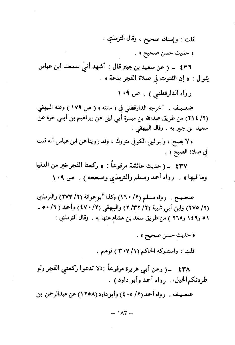 (436) - (عن سعيد بن جبير قال: أشهد أنى سمعت ابن عباس يقول: " إن القنوت فى صلاة الفجر بدعة " رواه الدارقطنى (ص 109) .