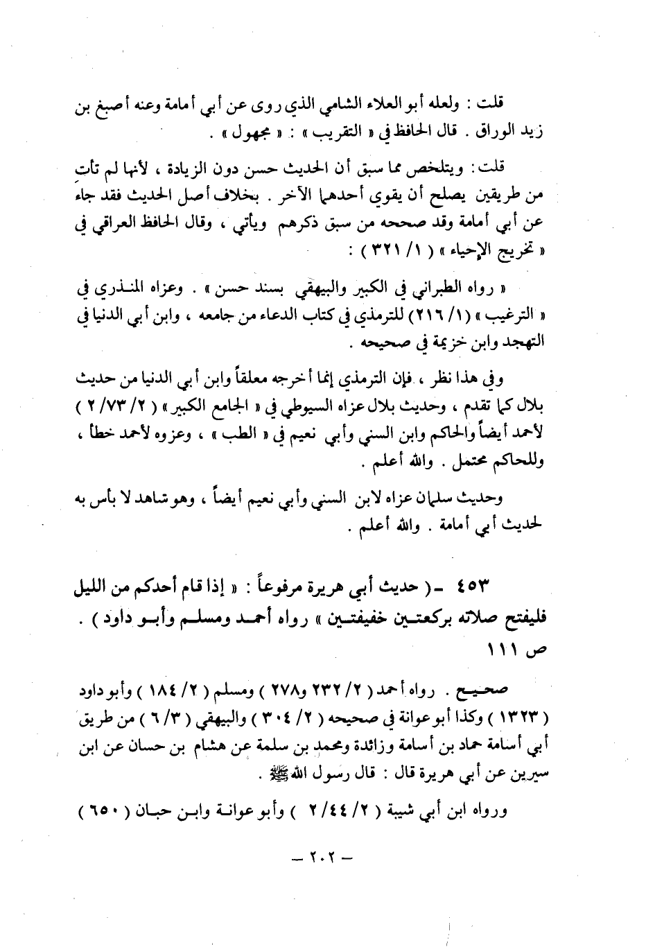 (453) - (حديث أبى هريرة مرفوعاً: " إذا قام أحدكم من الليل فليفتح صلاته بركعتين خفيفتين " رواه أحمد ومسلم وأبو داود (ص 111) .