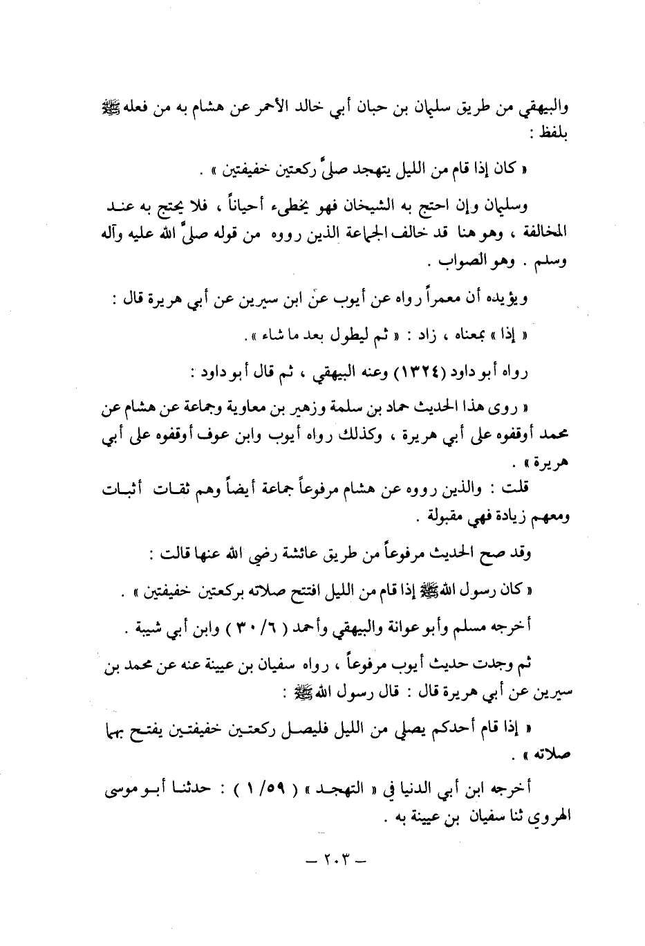 ثم وجدت حديث أيوب مرفوعاً , رواه سفيان بن عيينة عنه عن محمد بن سيرين عن أبى هريرة قال: قال رسول الله صلى الله عليه وسلم: " إذا قام أحدكم يصلى من الليل فليصل ركعتين خفيفتين يفتح بهما صلاته ".
