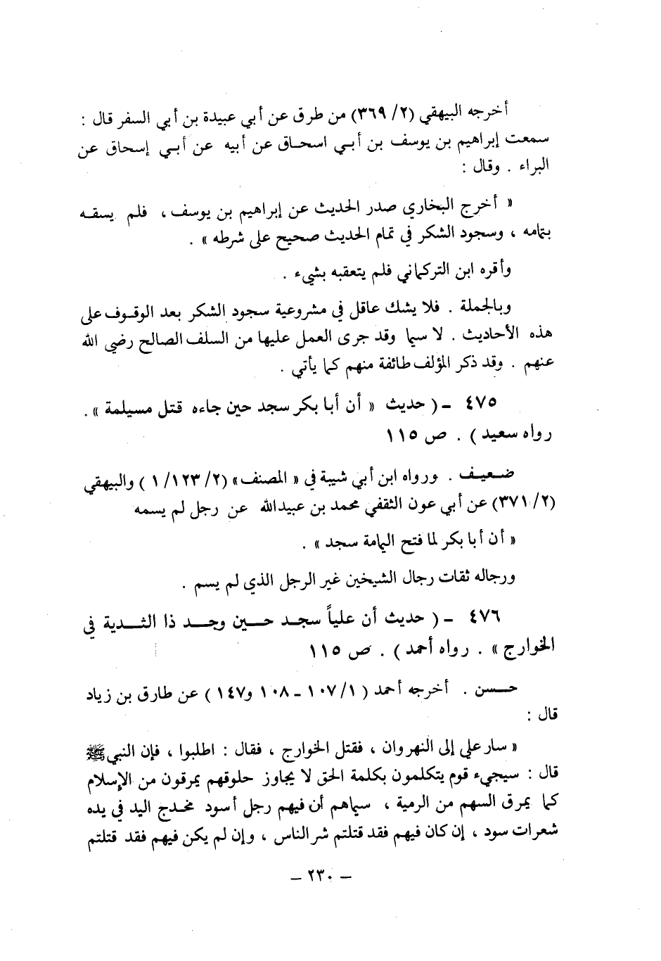 (475) - (حديث: " أن أبا بكر سجد حين جاءه قتل مسيلمة " رواه سعيد (ص 115) .