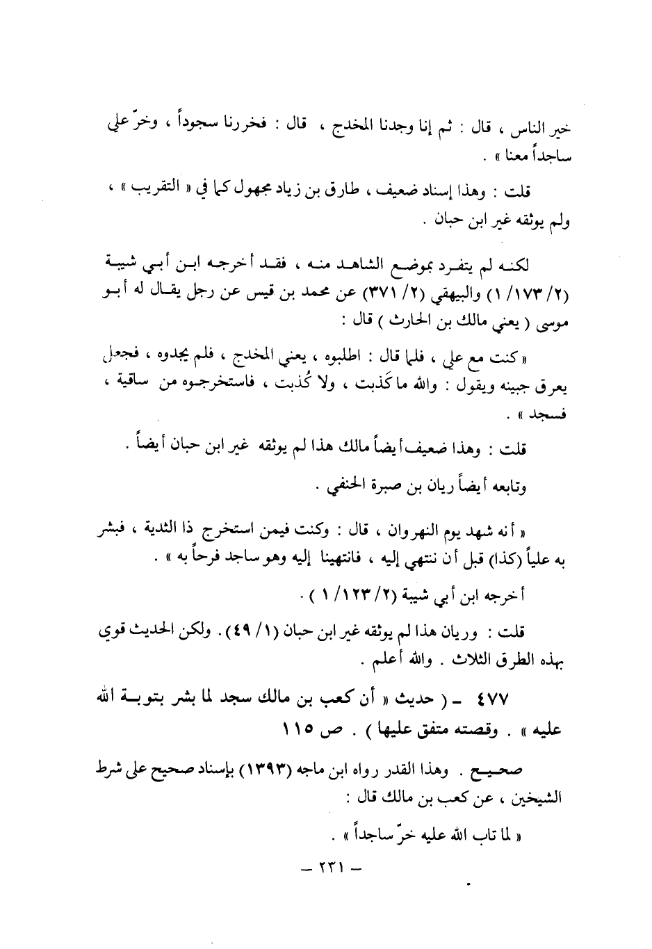 (477) - (حديث: " أن كعب بن مالك سجد لما بشر بتوبة الله عليه " وقصته متفق عليها (ص 115) .