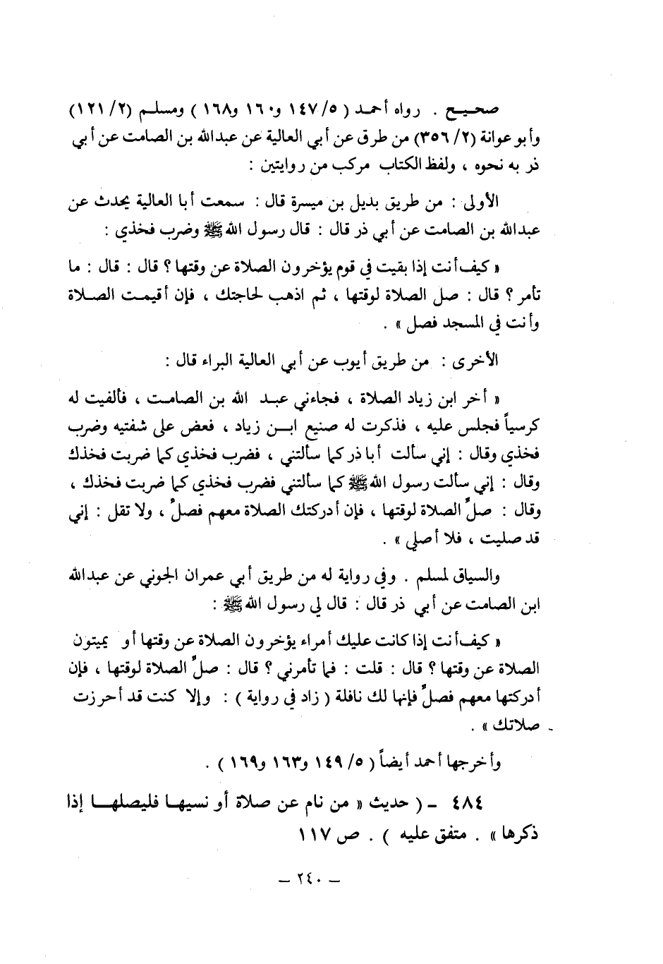(484) - (حديث: " من نام عن صلاة أو نسيها فليصلها إذا ذكرها " متفق عليه (ص 117) .