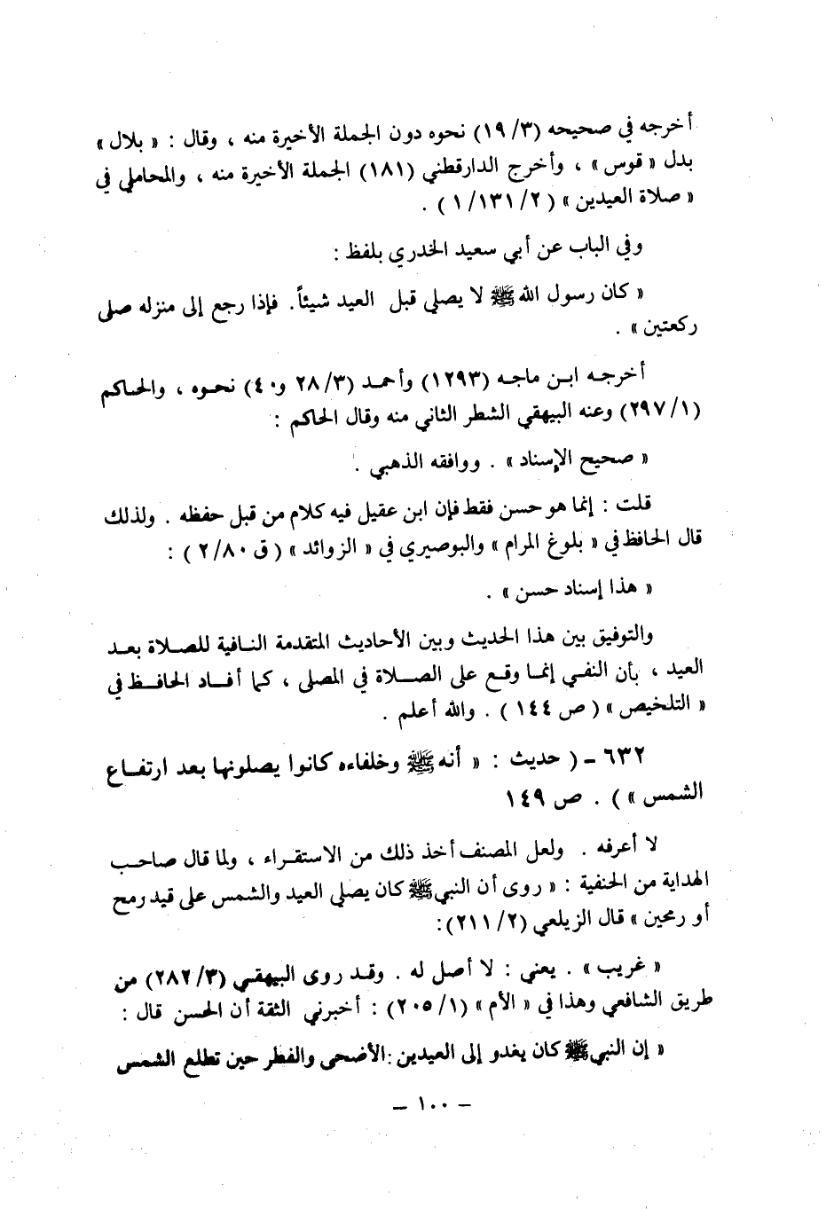 والتوفيق بين هذا الحديث وبين الأحاديث المتقدمة النافية للصلاة بعد العيد , بأن النفى إنما وقع على الصلاة فى المصلى , كما أفاد الحافظ فى " التلخيص " (ص 144) , والله أعلم.