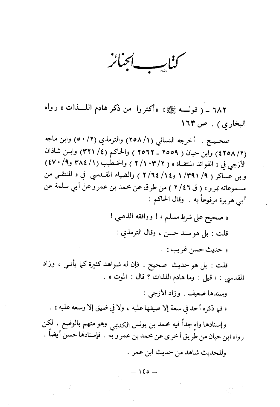 (682) - (قوله صلى الله عليه وسلم: " أكثروا من ذكر هادم اللذات " رواه البخارى (ص 163) .