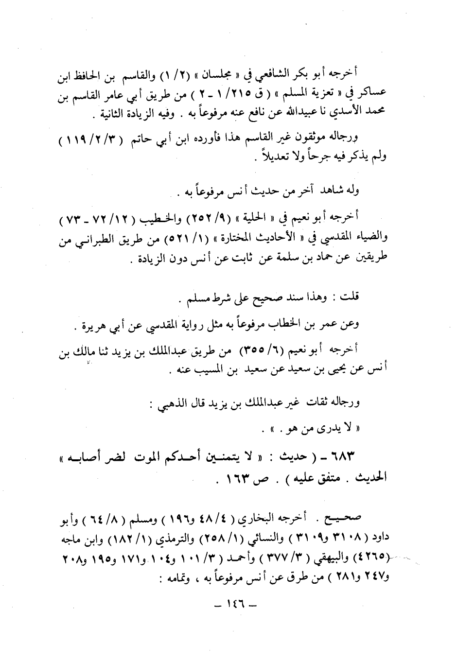 (683) - (حديث: " لا يتمنين أحدكم الموت لضر أصابه " الحديث. متفق عليه (ص 163) .