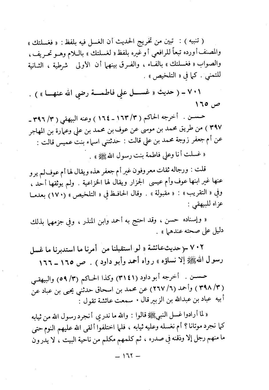 (701) - (حديث: " غسل على فاطمة رضى الله عنها " (ص 165) .