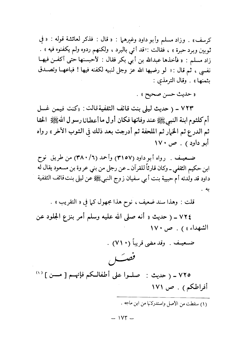 (725) - (حديث: " صلوا على أطفالكم فإنهم [من] (1) أفراطكم (ص 171) .