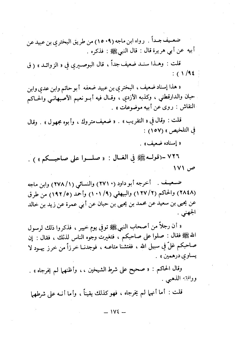 (726) - (قوله صلى الله عليه وسلم فى الغال: " صلوا على صاحبكم " (ص 171) .