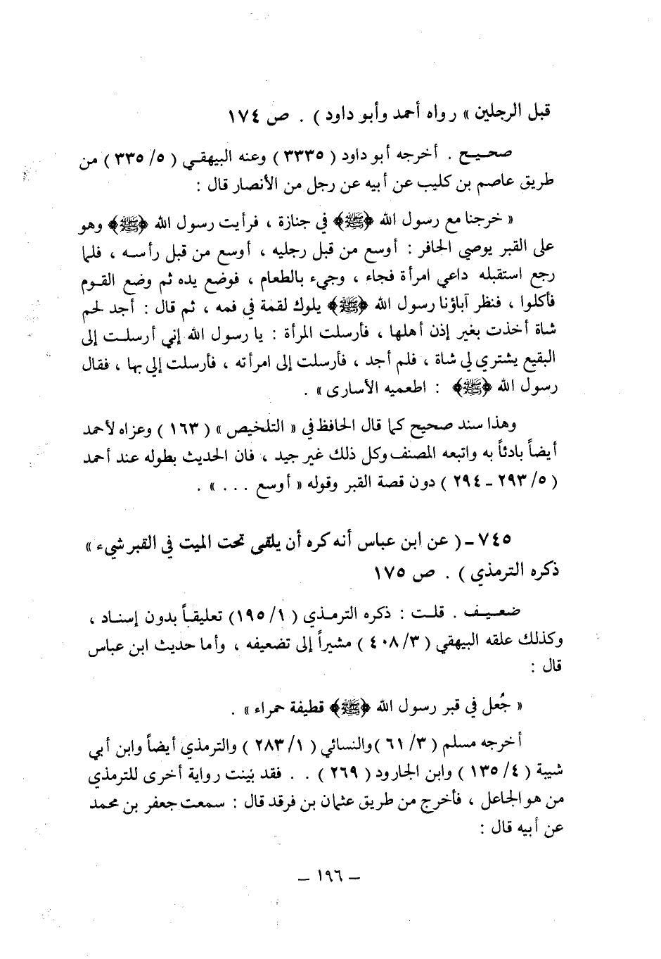 قبل الرجلين " رواه أحمد وأبو داود (ص 174) .