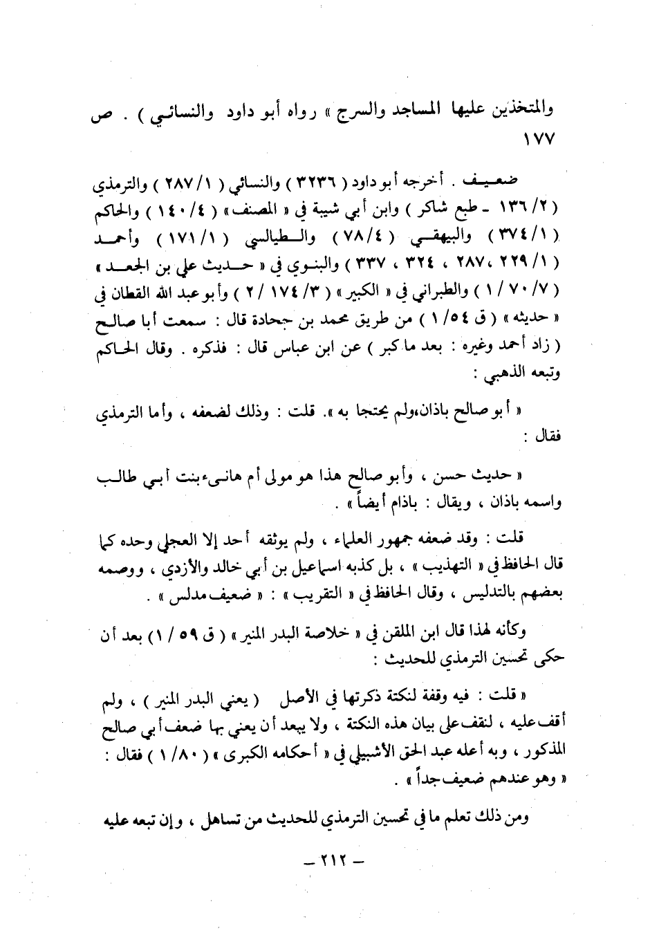قلت: وذلك لضعفه , وأما الترمذى فقال: " حديث حسن , وأبو صالح هذا هو مولى أم هانىء بنت أبى طالب واسمه باذان , ويقال: باذام أيضا ".