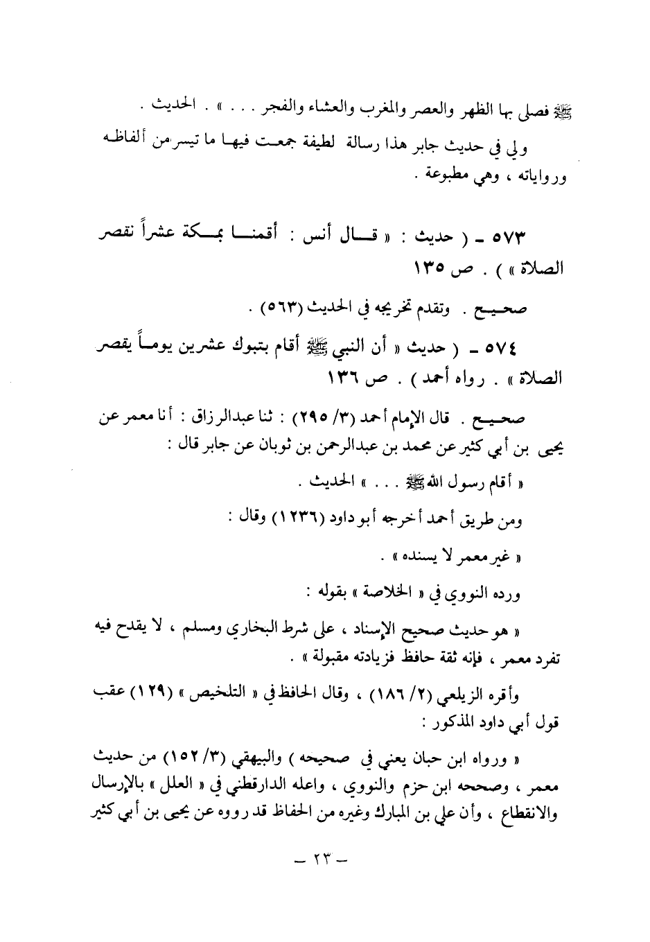 (573) - (حديث: " قال أنس: أقمنا بمكة عشراً نقصر الصلاة " (ص 135) .