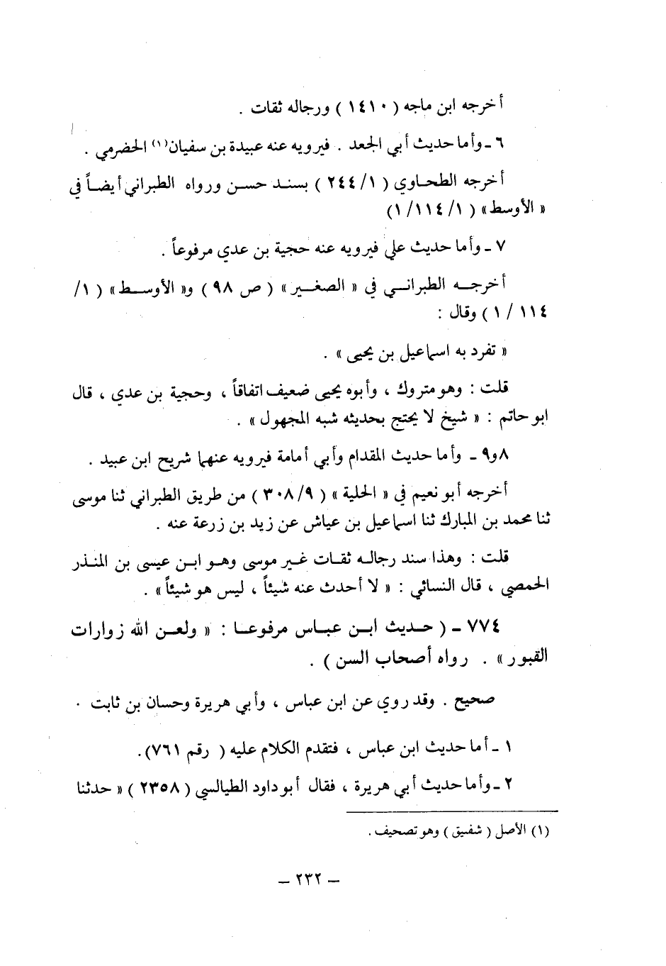 (774) - (حديث ابن عباس مرفوعا: " ولعن الله زوارات القبور " رواه أصحاب السن [1] .