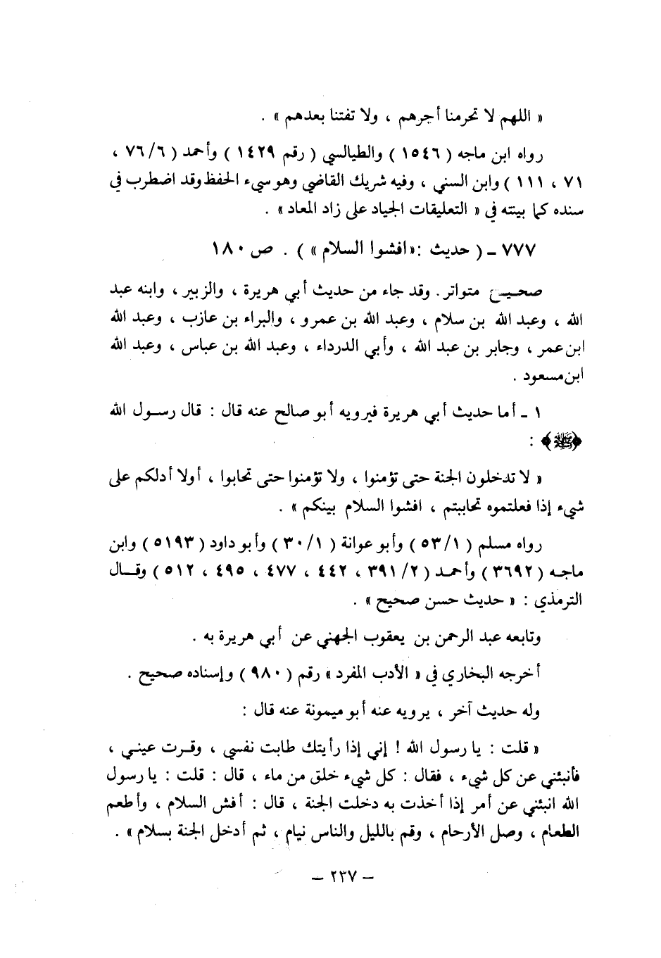 (777) - (حديث: " أفشوا السلام " (ص 180) .