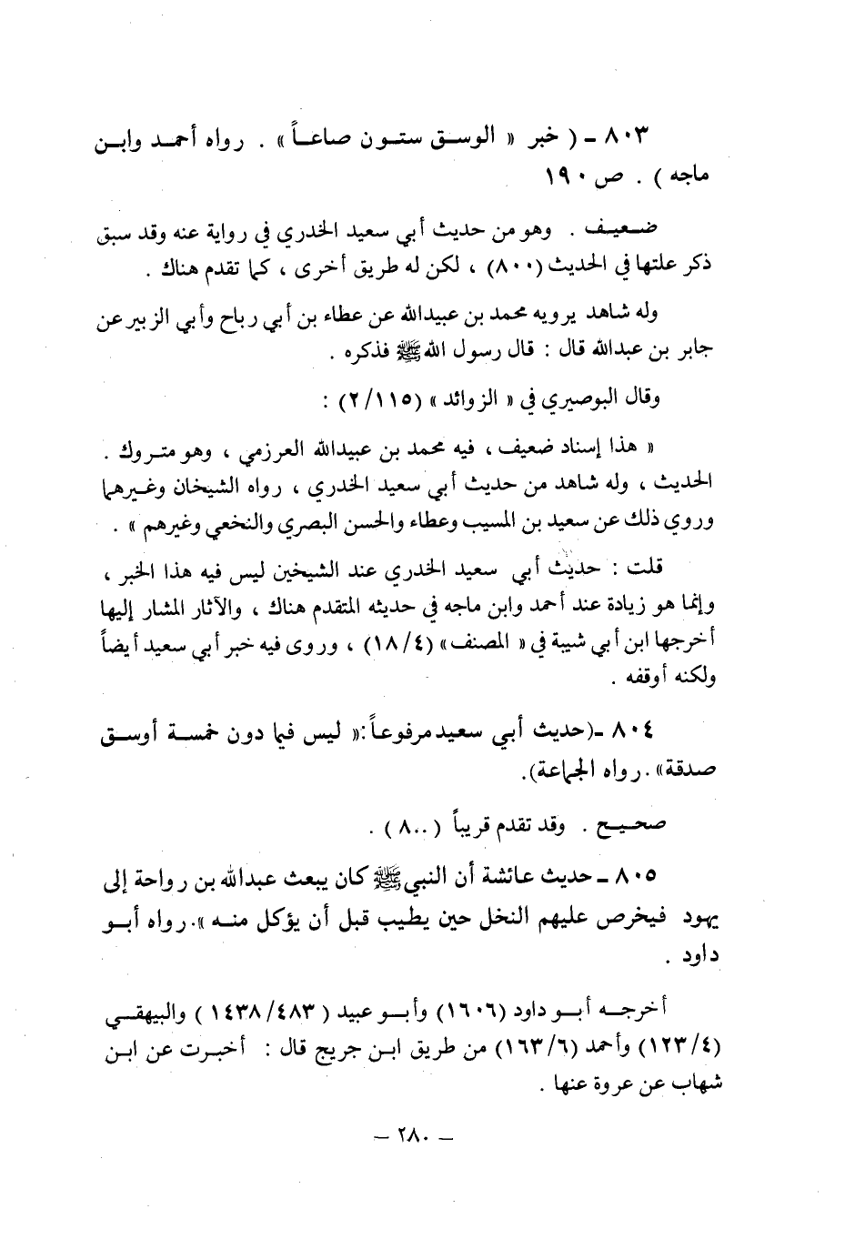 (803) - (خبر: " الوسق ستون صاعا " رواه أحمد وابن ماجه (ص 190) .