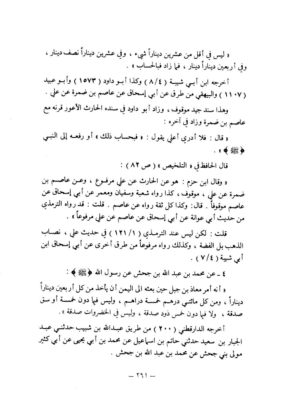 قلت: لكن ليس عند الترمذى (1/121) فى حديث على , نصاب الذهب بل الفضة ,وكذلك رواه مرفوعا من طرق أخرى عن أبى إسحاق ابن أبى شيبة (4/7) .