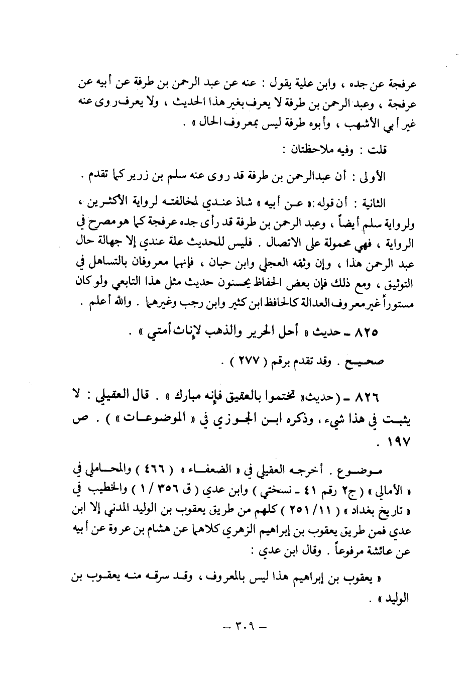 (825) - (حديث: " أحل الحرير والذهب لإناث أمتى ".