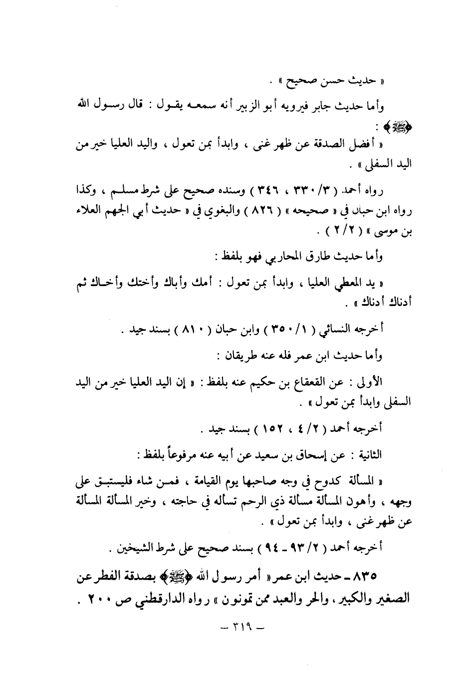 (835) - (حديث ابن عمر: " أمر رسول الله صلى الله عليه وسلم بصدقة الفطر عن الصغير والكبير , والحر والعبد ممن تمونون " رواه الدارقطنى (ص 200) .
