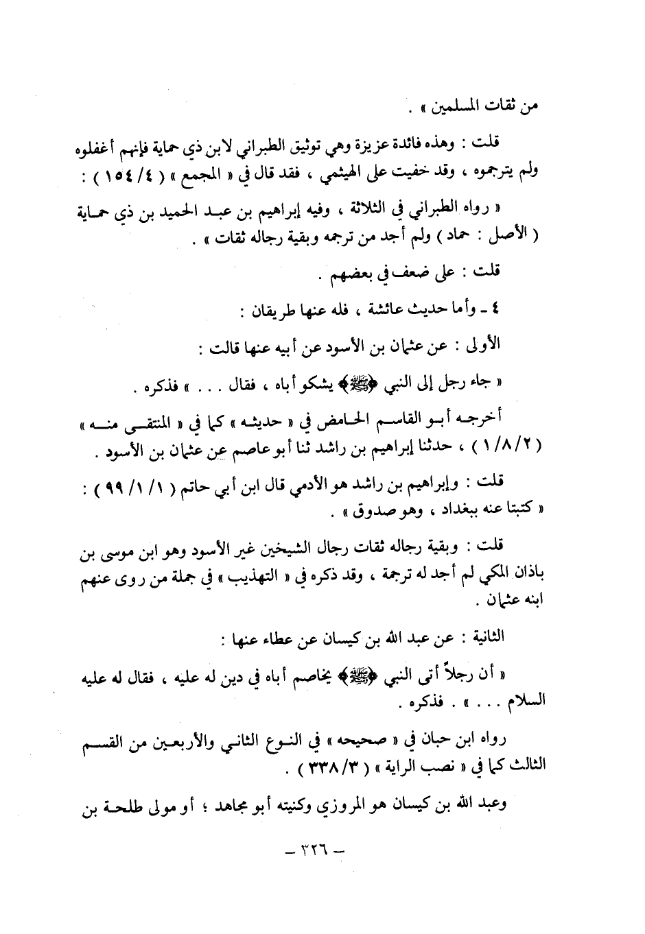 قلت: وهذه فائدة عزيزة وهى توثيق الطبرانى لابن ذى حماية فإنهم أغفلوه ولم يترجموه , وقد خفيت على الهيثمى , فقد قال فى " المجمع " (4/154) : " رواه الطبرانى فى الثلاثة , وفيه إبراهيم بن عبد الحميد بن ذى حماية (الأصل: حماد) ولم أجد من ترجمة وبقية رجاله ثقات ".