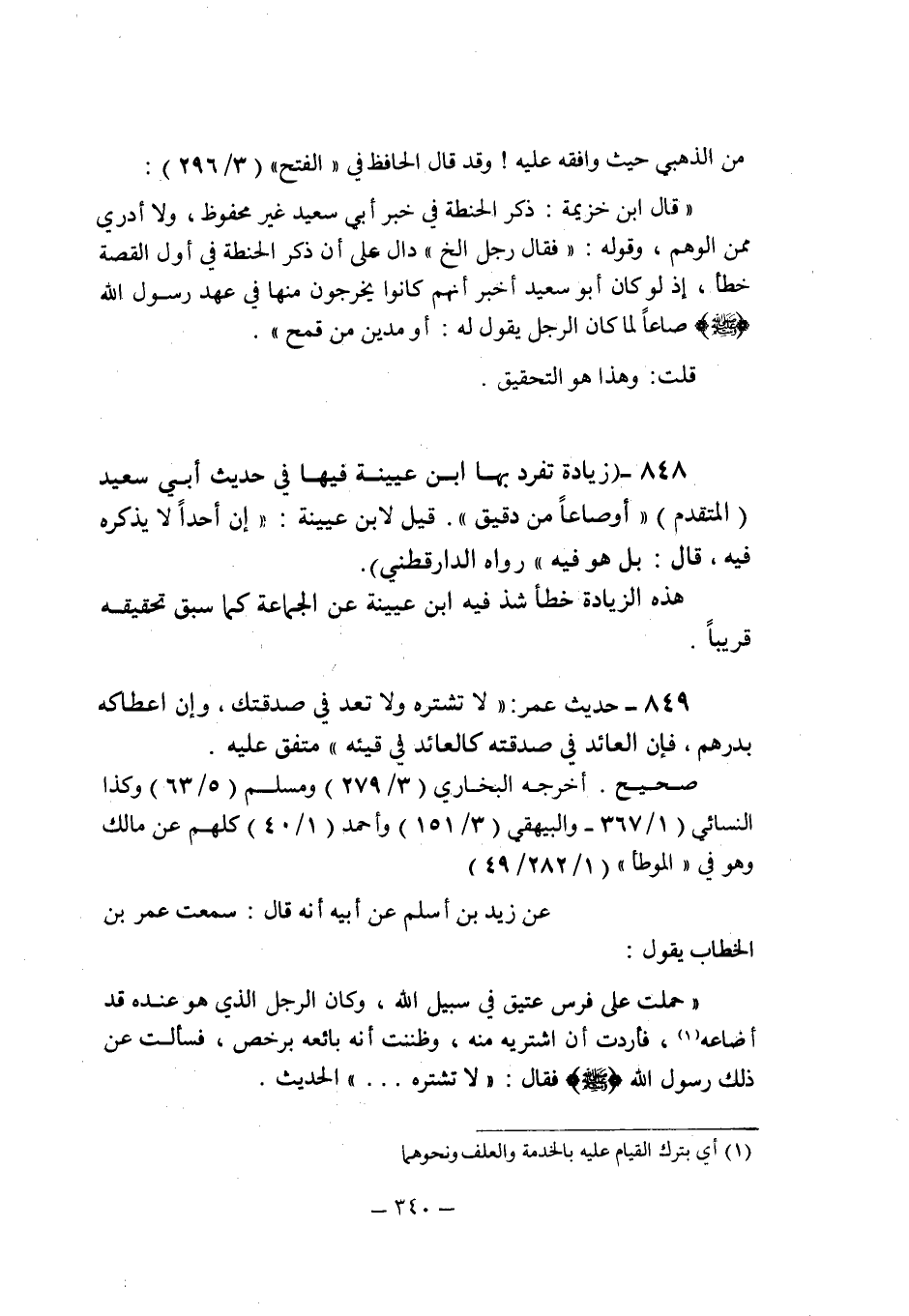 (849) - (حديث عمر: " لا تشتره ولا تعد فى صدقتك , وإن اعطاكه بدرهم , فإن العائد فى صدقته كالعائد فى قيئه " متفق عليه.