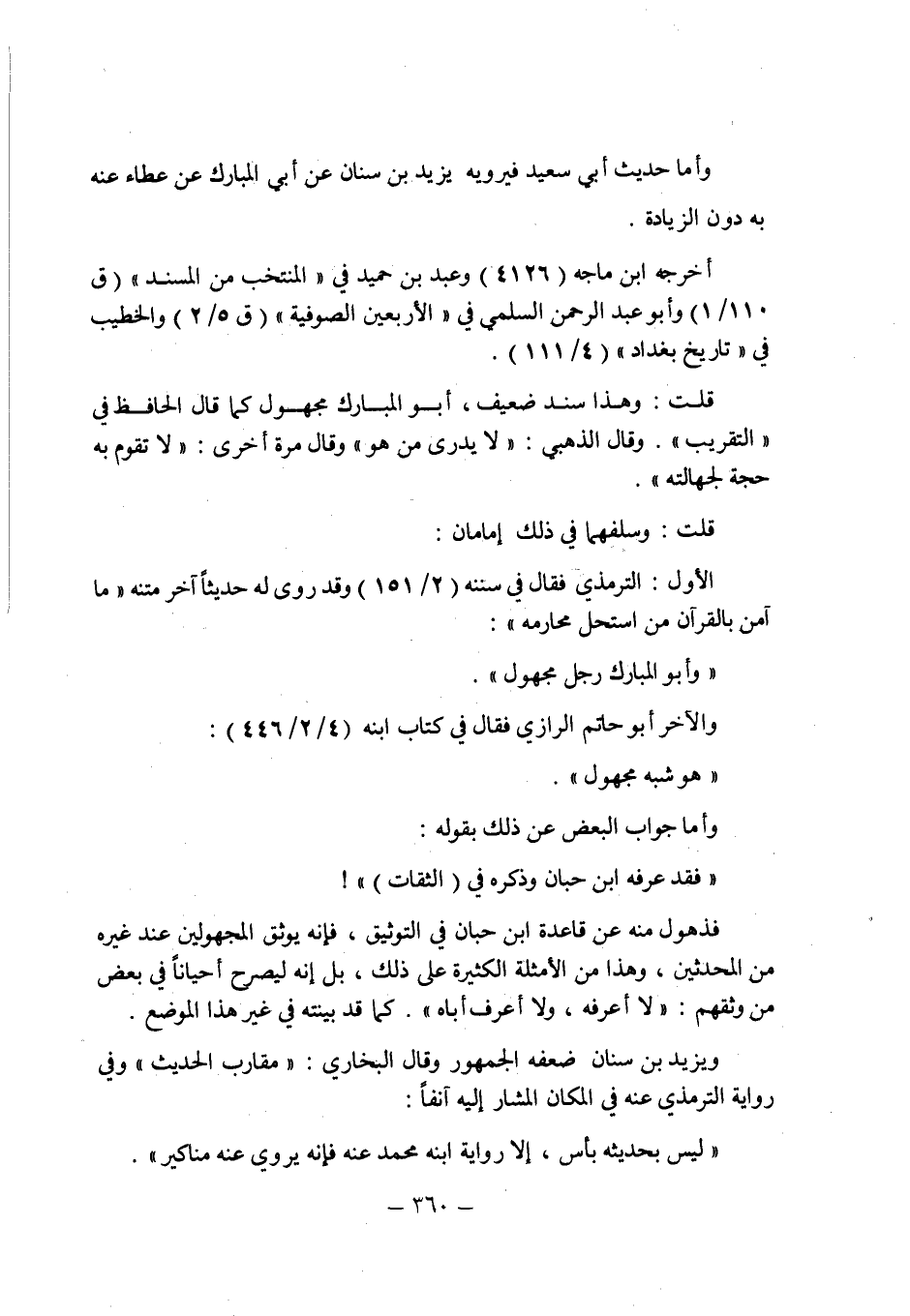 وأما حديث أبى سعيد فيرويه يزيد بن سنان عن أبى المبارك عن عطاء عنه به دون الزيادة.