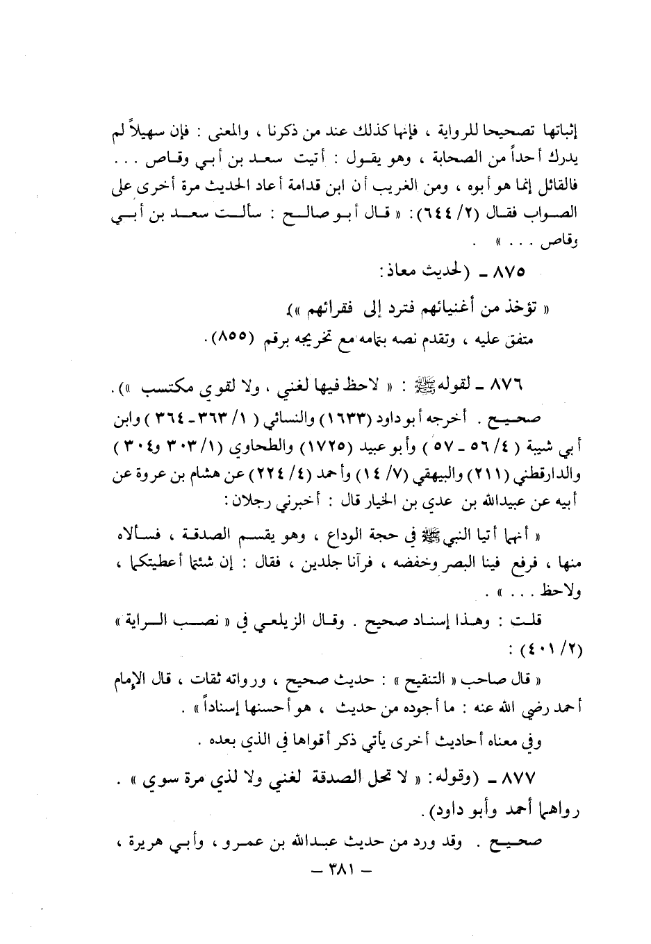 (875) - (لحديث معاذ: " تؤخذ من أغنيائهم فترد إلى فقرائهم ".