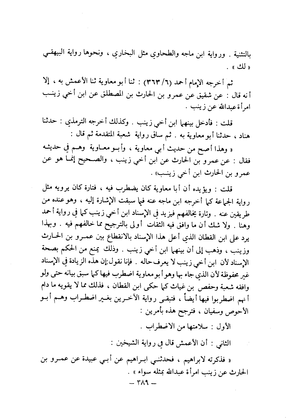 قلت: ويؤيده أن أبا معاوية كان يضطرب فيه , فتارة كان يرويه مثل رواية الجماعة كما أخرجه ابن ماجه عنه فيما سبقت الإشارة إليه , وهو عنده من طريقين عنه. وتارة يخالفهم فيزيد فى الإسناد ابن أخى زينب كما فى رواية أحمد , هنا , ولا شك أن ما وافق فيه الثقات أولى بالترجيح مما خالفهم فيه.