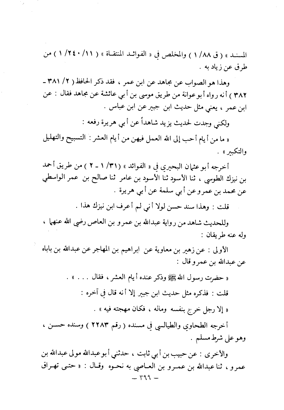 ولكنى وجدت لحديث يزيد شاهدا عن أبى هريرة رفعه: " ما من أيام أحب إلى الله العمل فيهن من أيام العشر: التسبيح والتهليل