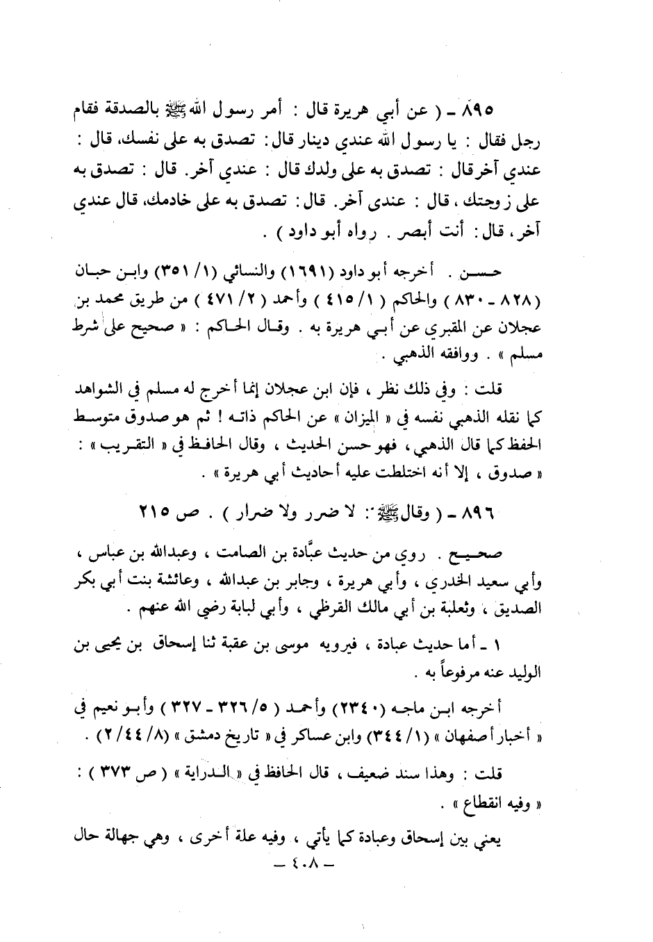 (896) - (وقال صلى الله عليه وسلم: " لا ضرر ولا ضرار " (ص 215) .