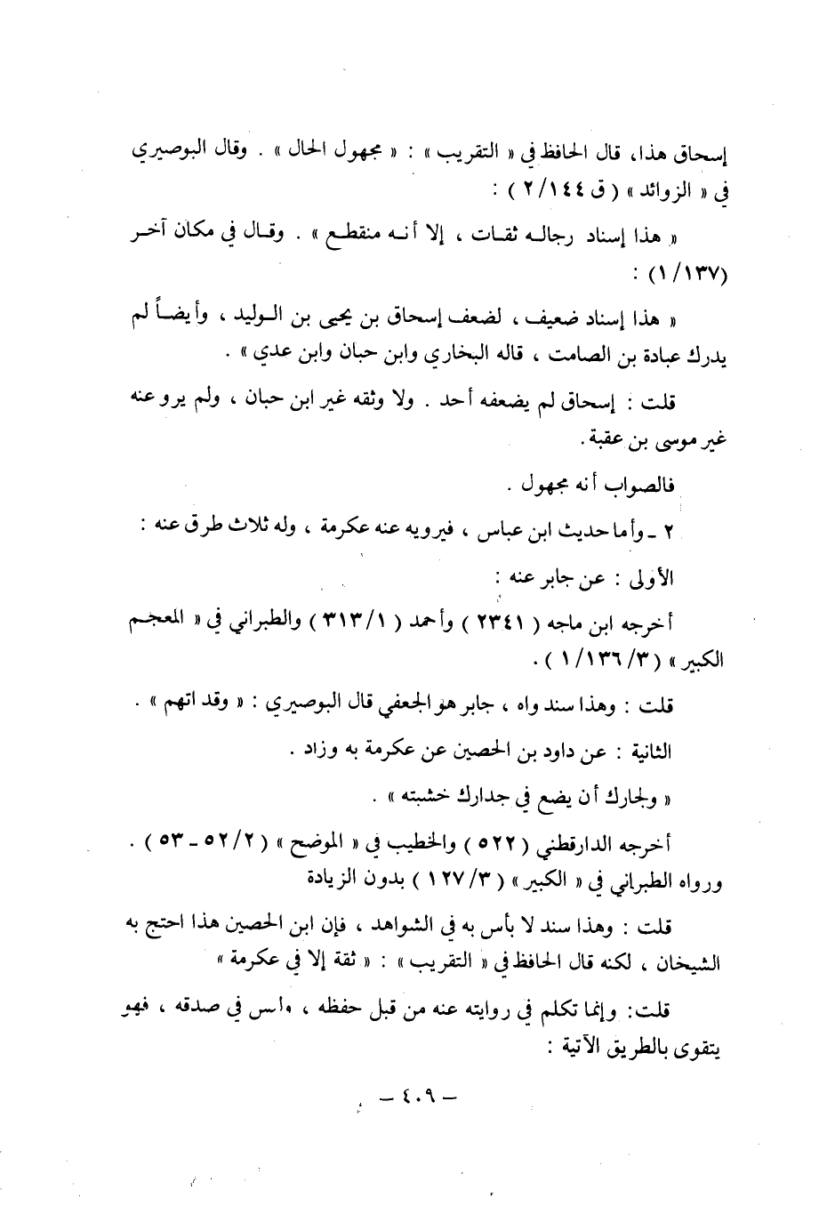 إسحاق هذا , قال الحافظ فى " التقريب ": " مجهول الحال ". وقال البوصيرى فى " الزوائد " (ق 144/2) : " هذا إسناد رجاله ثقات , إلا أنه منقطع ".