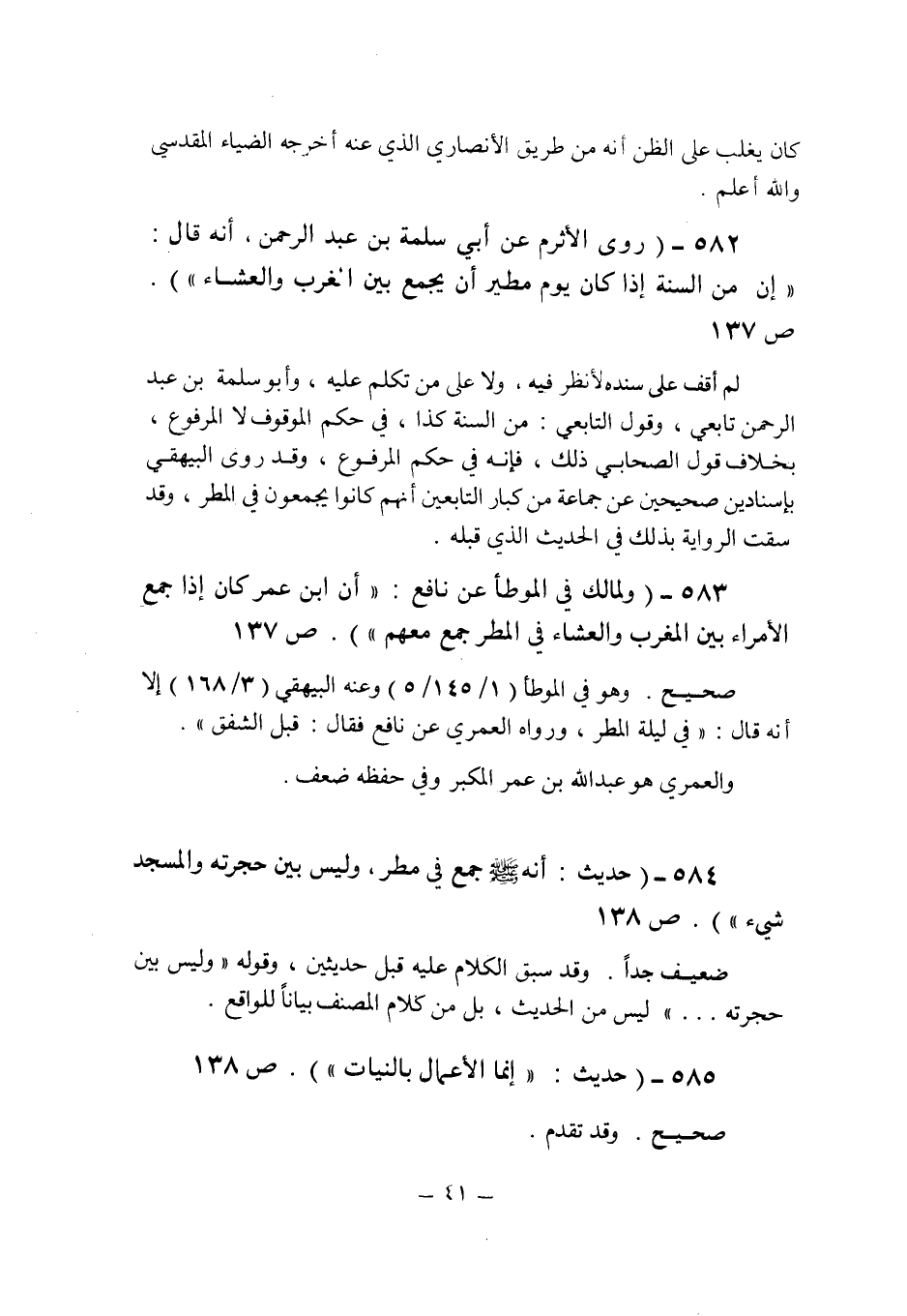 (585) - (حديث: " إنما الأعمال بالنيات " (ص 138) .